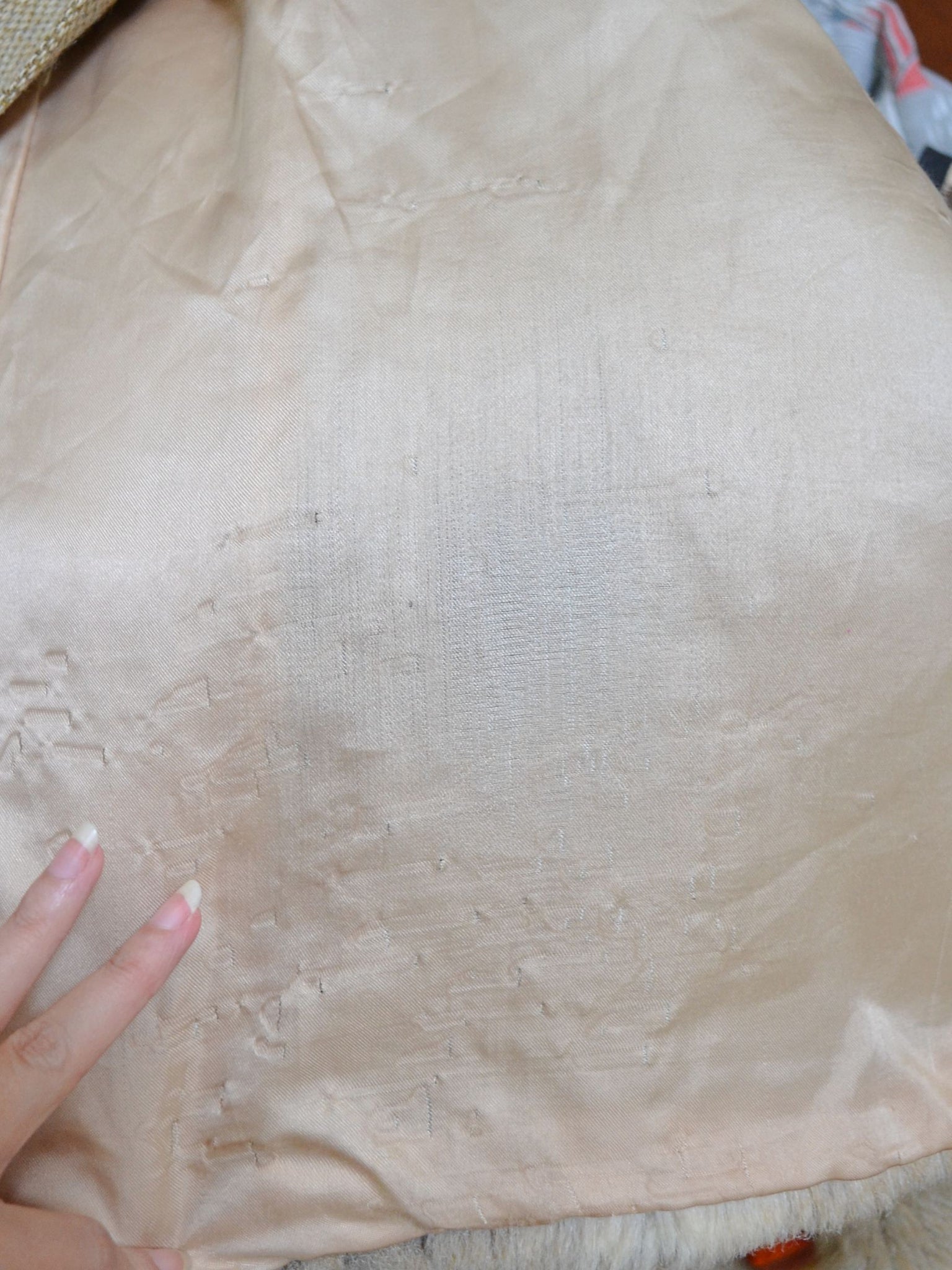 Presents excellently, a few little well-done flat darns to the shaped belt as pictured however nothing noticeable when worn! Lining has some thinning to the seat area, and some pulled fibres around armholes but these obviously aren’t seen when worn.